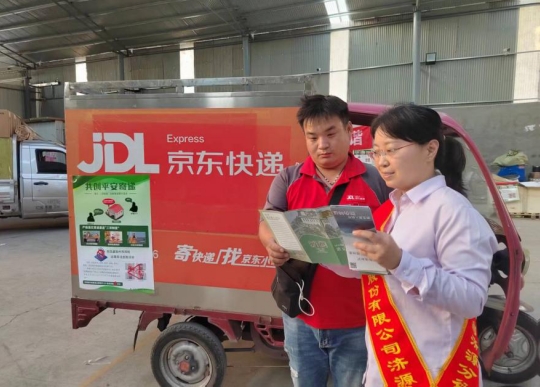 活動現(xiàn)場,該行工作人員向京東快遞員工發(fā)放人民幣知識相關(guān)宣傳折頁,講解人民幣反假知識、殘缺污損人民幣兌換辦法、舉報假幣犯罪獎勵政策等內(nèi)容,重點強(qiáng)調(diào)“人民幣是我國的法定貨幣,拒收人民幣是違法行為,任何單位和個人不得拒收人民幣”等相關(guān)知識。同時,該行工作人員為快遞車張貼“共創(chuàng)平安寄遞”宣傳海報,增強(qiáng)大家的反假意識。