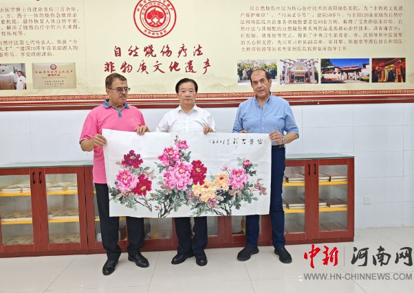 肖建勛教授指出:“此次交流是踐行‘中醫(yī)藥走出去’戰(zhàn)略的重要一步。埃及作為非洲和中東樞紐,將成為中醫(yī)藥國際化的重要支點。”肖建勛教授向來賓贈送了其專著《大圣手》及洛陽牡丹畫。