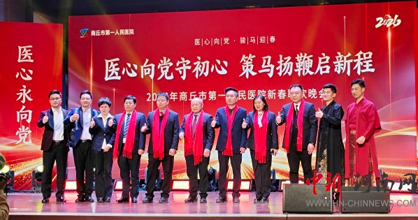 中新河南網(wǎng)2月10日電(刁玉壘 竇心雅)金鼓催春?jiǎn)⑿鲁,醫(yī)者同心賀佳節(jié)。2月6日晚,商丘市第一人民醫(yī)院門診樓五樓大禮堂燈火輝煌、暖意融融,以“醫(yī)心向黨守初心策馬揚(yáng)鞭啟新程”為主題的2026年春節(jié)聯(lián)歡晚會(huì)隆重舉行。醫(yī)院黨委書記、院長(zhǎng)王玉棟攜院領(lǐng)導(dǎo)班子成員,與臨床一線醫(yī)務(wù)人員、離退休老同志代表及患者家屬代表等500余人歡聚一堂,共慶新春;晚會(huì)同步開啟網(wǎng)絡(luò)直播,7萬余名市民在線圍觀點(diǎn)贊,線上線下共享團(tuán)圓年味,感受醫(yī)者擔(dān)當(dāng)。