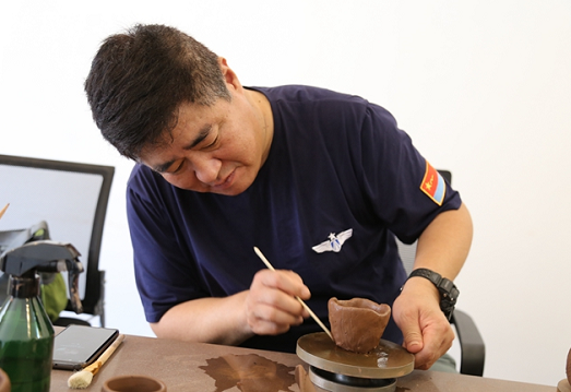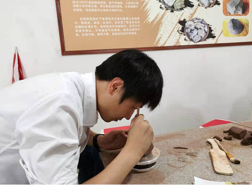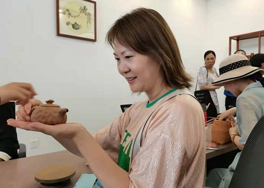 “紫砂文化產(chǎn)業(yè)園”負(fù)責(zé)人、河南省工藝美術(shù)大師張逸人向客人詳細(xì)講解了紫砂文化、紫砂產(chǎn)品的制作流程等,并參觀了紫砂原礦料,親自指導(dǎo)研學(xué)游成員現(xiàn)場制作,讓游客在品享制作之樂的同時(shí),近距離與大師來一次親密接觸。