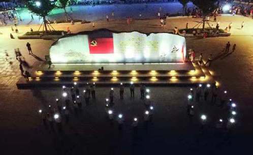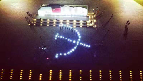 宣誓結(jié)束隊員們掏出手機打開燈光,放在頭上,排列成鐮刀和斧頭的樣式,而后又排成了100的字樣,象征著建黨100周年。無人機航拍下了這狀觀的一暮,得到了到公園夜游的圍觀市民的一致贊揚。很多人手機拍照轉(zhuǎn)發(fā)。