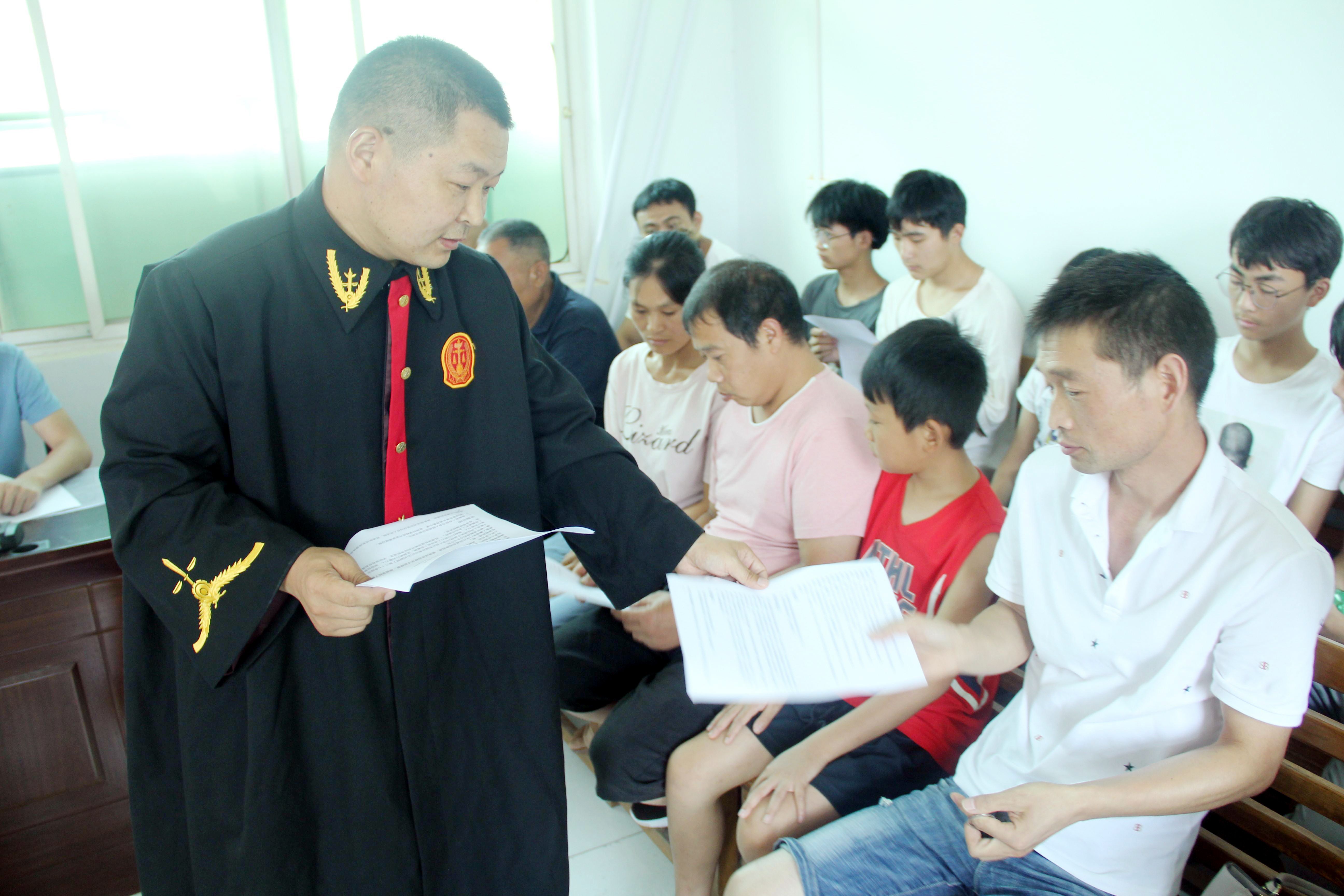 中新河南網7月14日電(謝志廣)為扎實開展“我為群眾辦實事”實踐活動,貫徹落實省法院“邀請群眾旁聽庭審”活動要求,加強對學生暑假期間法治安全教育。7月8日,扶溝縣人民法院呂潭人民法庭公開開庭審理一起因學生在校玩耍引起的健康權糾紛案,邀請10余名學生和群眾代表走進人民法庭旁聽庭審。