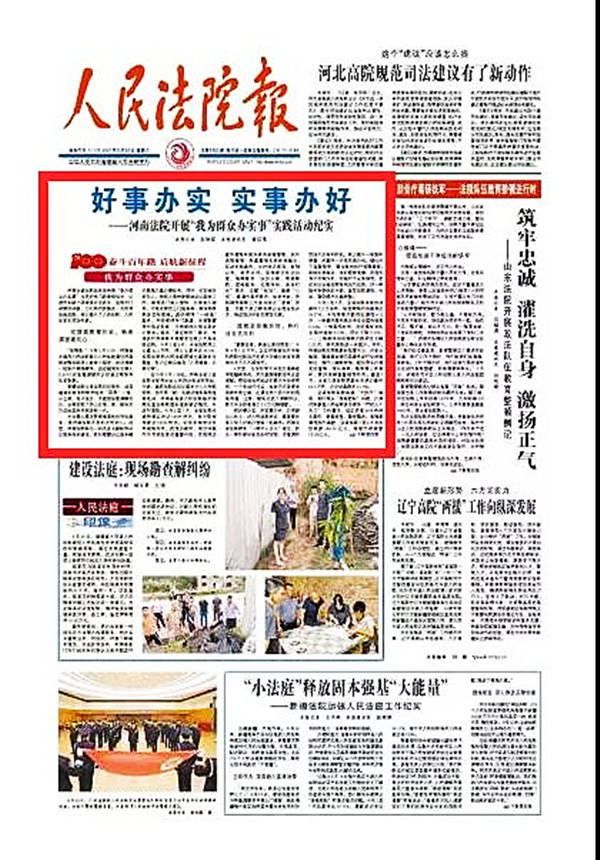 人民法院報(bào)頭條刊發(fā)河南法院經(jīng)驗(yàn)做法:好事辦實(shí) 實(shí)事辦好