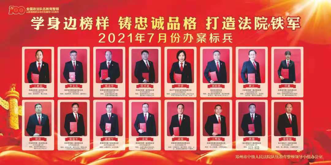8月5日,鄭州中院公布7月份法官業(yè)績評價(jià)排名,王新茹、張興成、耿立等16名法官榜上有名。