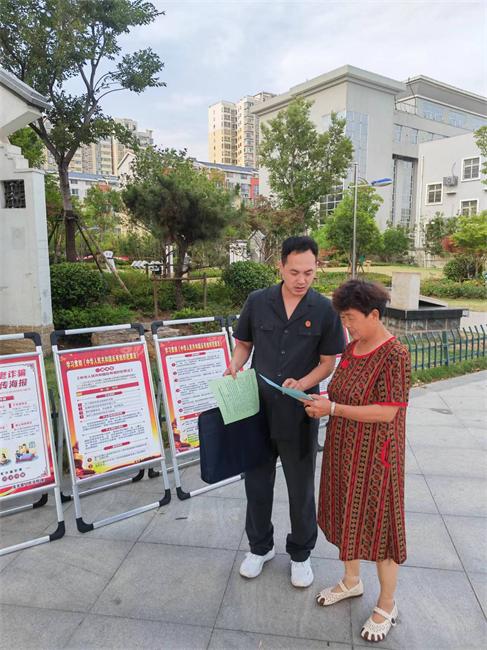 活動(dòng)中,普法干警在縣交通要道、法治公園通過擺放宣傳版畫、懸掛宣傳橫幅、發(fā)放宣傳單頁等形式進(jìn)行普法宣傳。