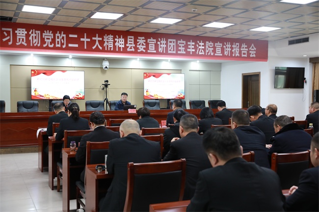 中新河南網(wǎng)3月24日電(董媛媛)按照縣委深入學(xué)習(xí)貫徹黨的二十大精神的統(tǒng)一安排部署,3月23日,寶豐縣人民法院邀請(qǐng)縣委黨校副校長(zhǎng)、高級(jí)講師郭會(huì)展同志開(kāi)展黨的二十大精神專(zhuān)題宣講,全院再次掀起學(xué)習(xí)宣傳貫徹黨的二十大精神的熱潮。