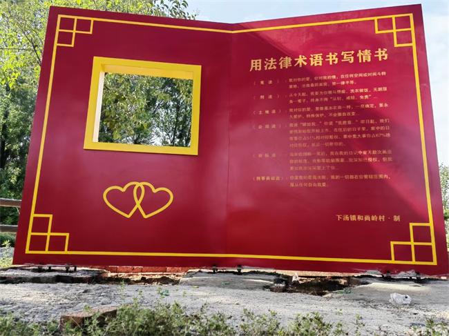 在該村“游玩+普法”法治文化游園里,通過憲法宣誓誓詞石雕、普法亭、學(xué)法長廊、法治文化石盤等,對現(xiàn)行的憲法、民商法、刑法、行政法、社會法、經(jīng)濟(jì)法、訴訟與非訴訟程序法等法律知識進(jìn)行通俗科普;建立“以法律術(shù)語書寫愛情”為主題的網(wǎng)紅打卡地,也吸引了眾多年輕人的目光。