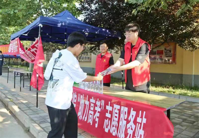 活動(dòng)現(xiàn)場(chǎng),志愿者為考生、家長們免費(fèi)發(fā)放礦泉水、紙巾、濕巾等物品,為他們送去一份清涼愛心,送上最真誠的祝福,幫助考生們排解心理壓力、舒緩緊張情緒,耐心細(xì)致解答陪考家長的咨詢,全力護(hù)航高考學(xué)子圓夢(mèng)之路。
