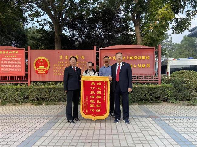 中新河南網(wǎng)(王柯雅)10月17日,被告楊某、徐某將一面印著“傾心調(diào)解化糾紛,秉公執(zhí)法暖民心”的錦旗送到了寶豐縣人民法院立案庭,對法官秉公辦案、高效調(diào)解表達感激之情。原來,近日寶豐法院通過訴前保全措施在訴前高效化解了一起民間借貸糾紛。