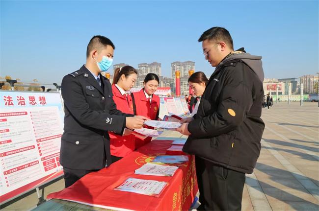 中新河南網(wǎng)(耿海鑫 廉炳南)為大力弘揚憲法精神,建設(shè)社會主義法治文化。12月4日上午,在第十個國家憲法日暨第六個“憲法宣傳周”來臨之際,魯山縣法院組織20余名干警到堯山廣場積極參加2023年魯山縣“國家憲法日”集中宣傳活動。