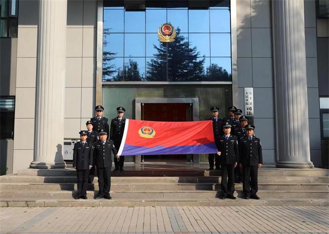 上午9點,全體司法警察警容嚴(yán)整,大隊長方延勇領(lǐng)誓,向警旗莊嚴(yán)宣誓,聲音鏗鏘有力,擲地有聲,傳遞著忠誠于黨、為民服務(wù)的政治本色和捍衛(wèi)法律尊嚴(yán)、推進(jìn)法治建設(shè)的責(zé)任擔(dān)當(dāng)。