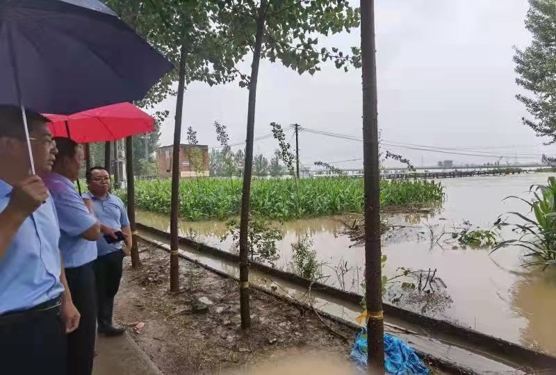堤壩上,防汛人員正在冒雨巡查險(xiǎn)情,現(xiàn)場防汛的獲嘉縣司法局副局長王林對博苑所黨支部的慰問和關(guān)心表示感謝。五位黨員律師與防汛人員一起巡查堤內(nèi)堤外縫隙,查勘河水水位。
