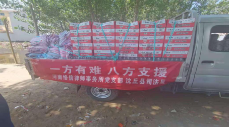 7月25日上午,在沈丘縣司法局黨委委員、副局長(zhǎng)趙峰的帶領(lǐng)下,河南恪信律師事務(wù)所張偉、韓海龍、李軍旗等一行人員,不懼炎熱,排除困難,驅(qū)車來到扶溝縣城郊鄉(xiāng)馬村行政村,為受災(zāi)的群眾、堅(jiān)守在抗災(zāi)前線的村干部和救援隊(duì)伍送上方便面、救生圈、礦泉水和夏涼被等必備的救援物資,以緩解他們的燃眉之急。當(dāng)?shù)匕傩者B聲稱贊:在斷水?dāng)嚯、家庭無法居住的困境下,這些物資真的是及時(shí)雨。