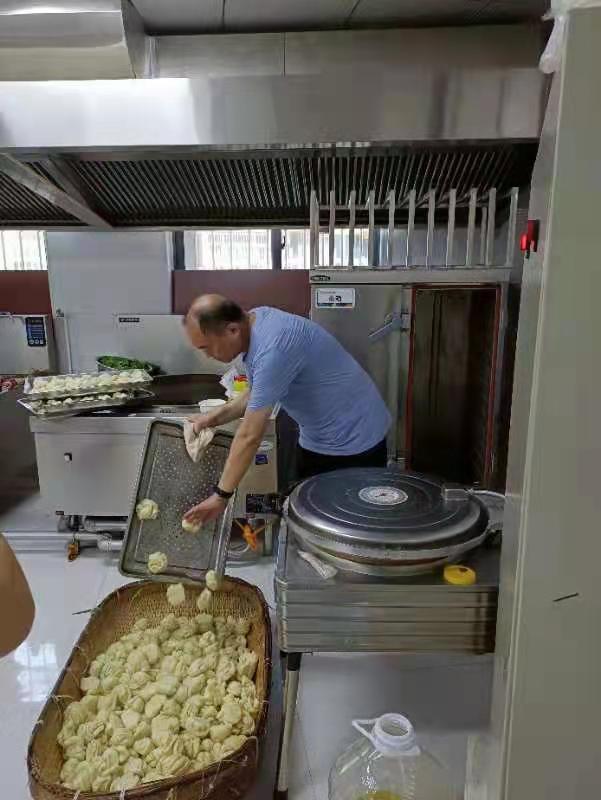 23日晚上劉燕燕、李朝娟、王霜三人通過溝微信溝通準(zhǔn)備為一線防汛人員和受災(zāi)群眾做點什么?三人商量就地取材,利用李朝娟的包子鋪為一線防汛人員和受災(zāi)群眾蒸油卷,所需物資由三人出資。社區(qū)婦聯(lián)主任兼農(nóng)家書屋文化專干劉燕燕利用村婦聯(lián)活動群進(jìn)行宣傳組織,僅僅5個小時的時間收到捐贈面粉1000斤、食用油100斤、大蔥100斤、微信轉(zhuǎn)款3200元、參與蒸油卷的婦女同志達(dá)100余人,有些婦女同志還是自帶工具、蒸籠、面盆、調(diào)料等。由于前方物資緊缺我們設(shè)定了兩個點蒸油卷、點位1在留莊營新區(qū)大院內(nèi)2號點位在市直一幼新二街分園廚房。與新鄉(xiāng)市紅旗區(qū)區(qū)直第三幼兒園領(lǐng)導(dǎo)以及員工攜手支援災(zāi)區(qū)。又增加大米盒飯。