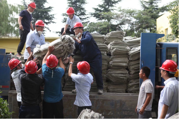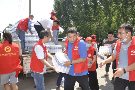 7月24日,豫鶴同力公司黨委及時(shí)成立黨員先鋒隊(duì),黨委書(shū)記龐建豫和10余名志愿者,帶著火腿腸、礦泉水、面包、方便面等急需品馳援災(zāi)區(qū)。平原同力建材公司也第一時(shí)間將籌備的編織袋送往新鄉(xiāng)市防汛重點(diǎn)牧野區(qū)彩虹橋處。