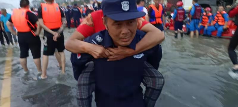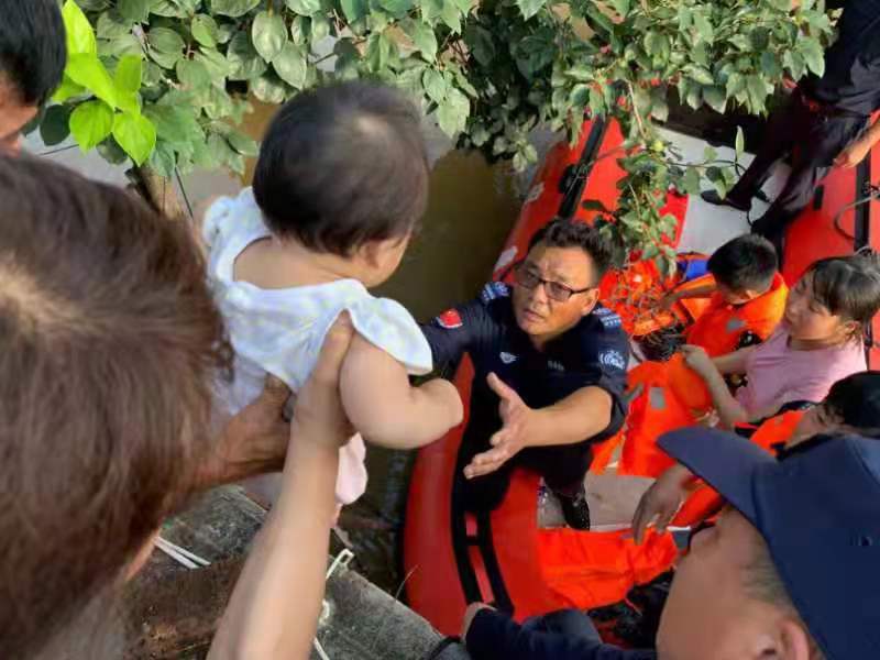 7月26日,新鄉(xiāng)市黃河機動應(yīng)急救援中心再次接到市局緊急通知,馬上趕往衛(wèi)輝進行救援。張輝隊長馬上對人員進行調(diào)整,年齡大一點身體已經(jīng)出現(xiàn)不適的,返回隊里值班休整,選出30名精干力量迅速趕赴衛(wèi)輝。在衛(wèi)輝救援的兩天,隊員們跳進齊腰深的水里,一站就是幾個小時,腿疼的鉆心,也堅持著。兩天時間共出動人數(shù)60人次,出動裝備鏟車2臺次,沖鋒舟一艘,幫助轉(zhuǎn)移受災(zāi)群眾和一附院病號工作人員共200余人。