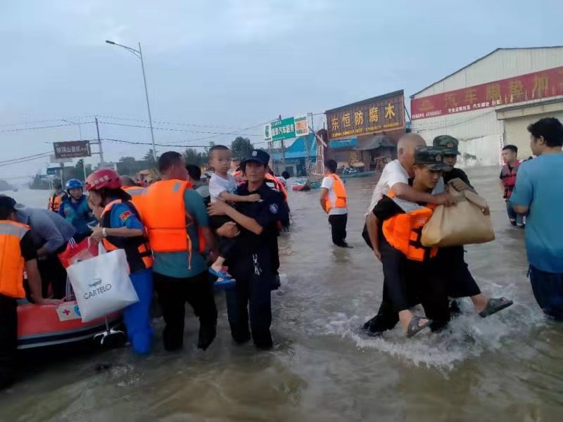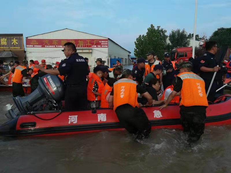 7月23日凌晨,接到新鄉(xiāng)市應(yīng)急救援保障中心張國強主任通知,新鄉(xiāng)受災(zāi)嚴(yán)重,需要馬上支援新鄉(xiāng),幫助群眾轉(zhuǎn)移。黃河機動應(yīng)急救援中心馬上出動鏟車3臺,后八輪3輛,沖鋒舟一艘,隊員36名,出發(fā)新鄉(xiāng)受災(zāi)最嚴(yán)重的地方大塊鄉(xiāng)進行救援。從7月23日到25日,黃河機動應(yīng)急救援中心共出動人數(shù)150余人次,出動鏟車9臺次,后八輪9臺次,幫助轉(zhuǎn)移群眾700余人次。隊員們經(jīng)過5天的緊張救援,體力都嚴(yán)重透支,有的隊員發(fā)燒了,吃點退燒藥就又沖了上去。