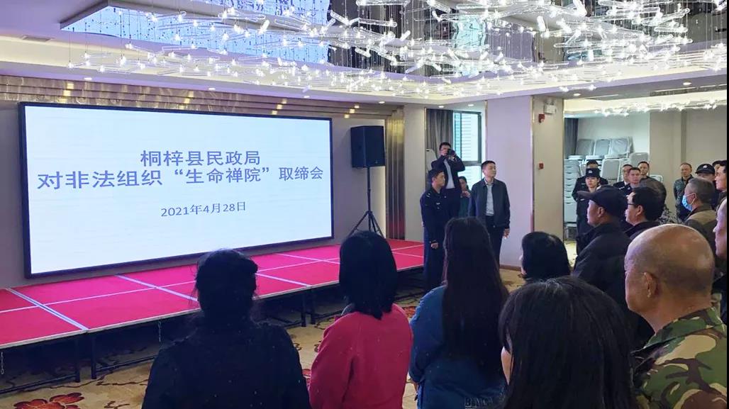 因“生命禪院”非法組織未經(jīng)登記、備案,擅自以社會團體名義開展活動,桐梓、安龍兩縣民政部門依據(jù)《社會團體登記管理條例》《取締非法民間組織暫行辦法》的有關(guān)規(guī)定,對其依法取締,并于4月28日下午、29日上午分別向窩點內(nèi)成員宣讀了取締決定書。之后,各地公安機關(guān)及有關(guān)部門工作人員分批次將被裹挾人員帶回原籍,與家人團聚。