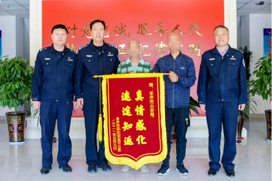 原籍山西的徐東,在當?shù)毓矙C關(guān)的教育下,也最終幡然悔悟。他的家人專程送來繡有“真情感化迷途知返”的錦旗,感謝政府的關(guān)愛和幫助。