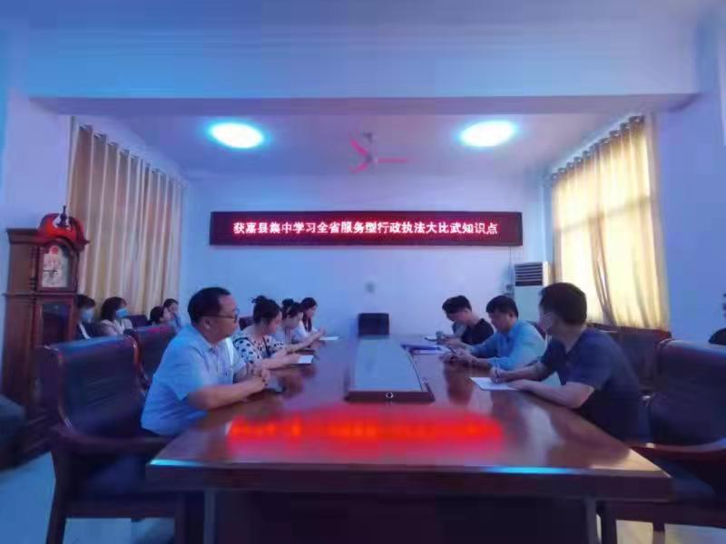 中新河南網(wǎng)訊(田波濤 通訊員 蘇清濤 蔣凌霞)為貫徹落實(shí)新鄉(xiāng)市2021年度領(lǐng)導(dǎo)干部學(xué)法計(jì)劃,提高領(lǐng)導(dǎo)干部依法決策、依法行政、依法管理能力和水平,日前,獲嘉縣司法局組織全體干警集中學(xué)習(xí)全省服務(wù)型行政執(zhí)法大比武理論知識(shí)點(diǎn)。