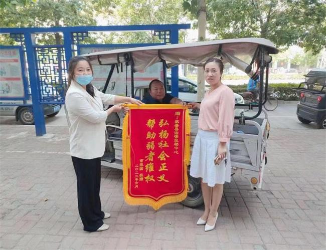 6月24日,曹某和其家屬來到該縣司法局公共法律服務中心,送來一面上書“弘揚社會正義幫助弱者維權”的錦旗,以表對法律援助中心和援助律師的感謝。
