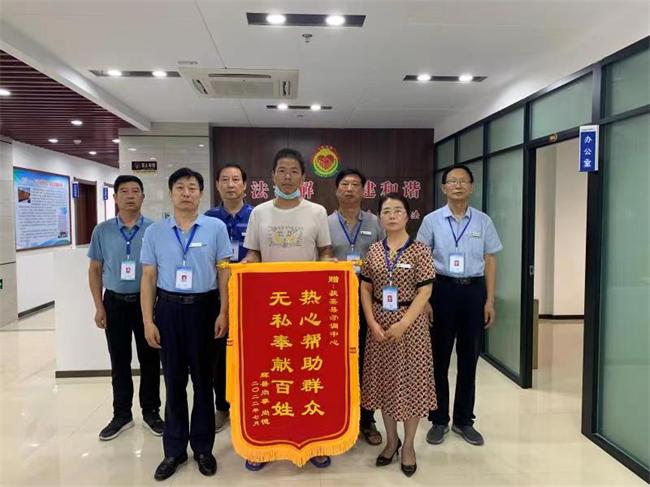 中新河南網(wǎng)7月22日電(李娜 張珂瑜)7月15日,輝縣市峪河鎮(zhèn)居民齊某來(lái)到獲嘉縣矛盾糾紛調(diào)解中心(下簡(jiǎn)稱“矛調(diào)中心”),送上一面印有“熱心幫助群眾無(wú)私奉獻(xiàn)百姓”的錦旗,感謝矛調(diào)中心在其家屬交通事故賠償一案中的辛勤付出;當(dāng)事人另一方也送來(lái)了“情系人民排憂解難”的錦旗,表達(dá)了對(duì)調(diào)解員的感謝之意。