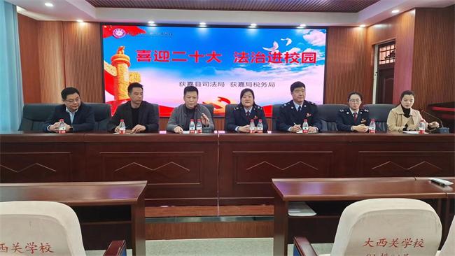 中新河南網(wǎng)10月12日電(杜小燕)為全面學(xué)習(xí)貫徹落實(shí)法治思想,加快推進(jìn)新時代法治校園建設(shè),10月11日,獲嘉縣司法局聯(lián)合縣稅務(wù)局深入城關(guān)鎮(zhèn)大西關(guān)學(xué)校開展“喜迎二十大法治進(jìn)校園”專項(xiàng)法治宣傳活動,為近百余名師生奉上一份精彩的“法治大餐”。獲嘉縣司法局黨組書記、局長馮濤,縣稅務(wù)局黨委委員、副局長盧希娟等參加活動。