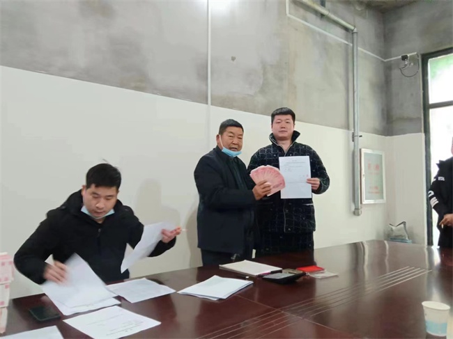 為確保協(xié)議履行,防止反悔,調(diào)解員全程跟進(jìn),督促各方按照協(xié)議約定履行承諾。2022年12月28日上午,在調(diào)解員的見證下,小區(qū)開發(fā)商將320萬元工程款支付給了建筑公司,隨后,建筑公司以班組為單位,將320萬元現(xiàn)金分發(fā)到了農(nóng)民工的手里。至此,一場(chǎng)因拖欠農(nóng)民工工資引發(fā)的群體性糾紛得到圓滿解決。