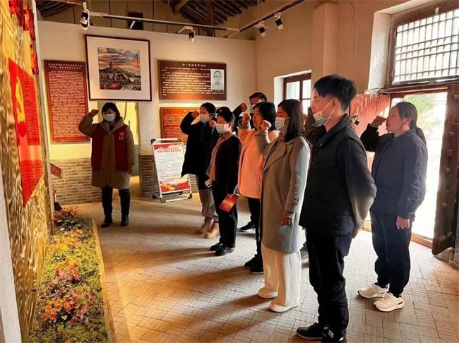 在劉橋縣委舊址展館內(nèi),全體黨員干部在講解員的介紹下再次回顧了徐一榮、徐一舟等先烈的革命事跡,在一張張老照片和一件件舊實(shí)物前,他們佇立凝神,沉思良久,深刻地感受到了革命先烈們崇高的革命理想、堅(jiān)定的革命意志和大無(wú)畏的革命精神。最后,全體黨員面對(duì)鮮艷的黨旗,莊嚴(yán)地高舉右拳,飽含力量和激情,重溫入黨誓詞,用最鏗鏘的聲音表達(dá)最堅(jiān)定的決心。
