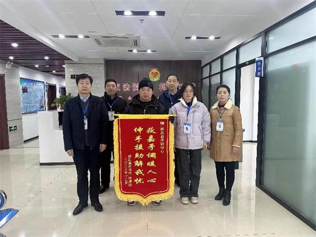 中新河南網(wǎng)(王凱琪 張珂瑜)12月21日,獲嘉縣位莊鄉(xiāng)居民劉某來(lái)到獲嘉縣矛調(diào)中心,送上一面“獲嘉矛調(diào)暖人心伸手援助解我憂(yōu)”的錦旗,對(duì)老同志們調(diào)解其母親意外摔傷賠償一案的辛勤付出表示感謝。