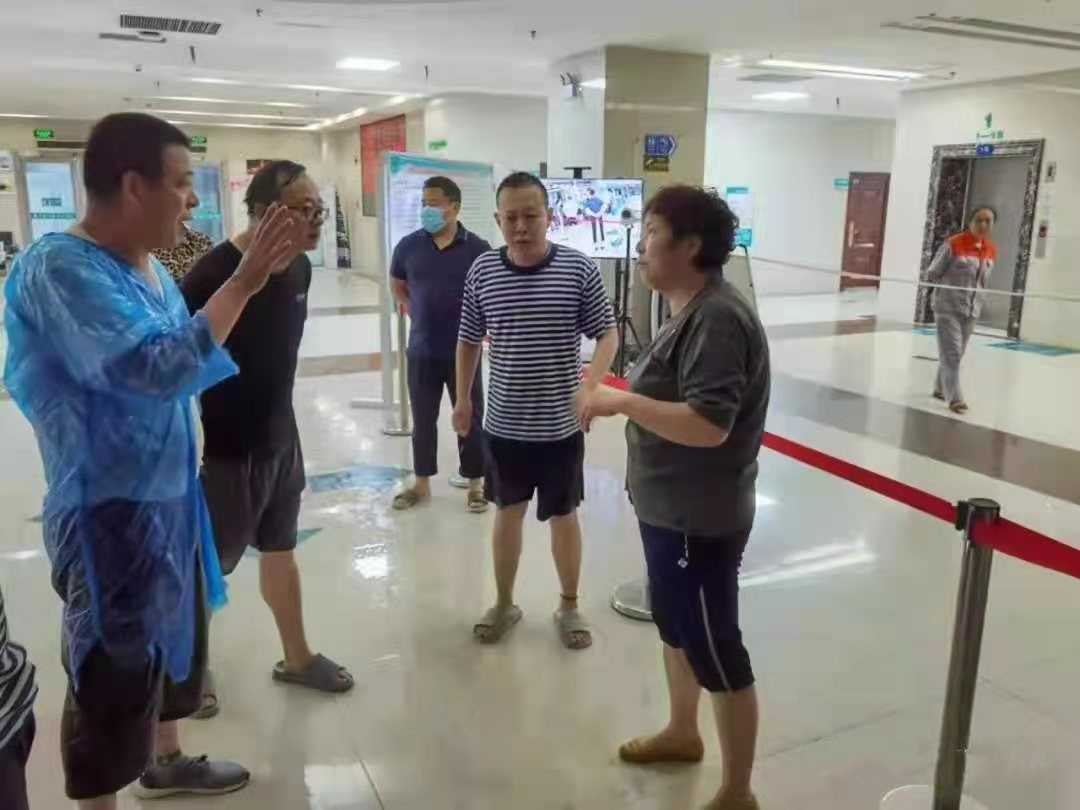 7月21日傍晚,新鄉(xiāng)市降雨轉(zhuǎn)為特大暴雨,據(jù)氣象部門預(yù)測(cè),未來幾個(gè)小時(shí),雨勢(shì)仍將持續(xù)。晚上七點(diǎn),趙松廣同志正在家吃飯,眼看著暴雨如注,地面開始有積水了,他放下筷子,披上雨衣就跑去醫(yī)院。到了辦公室碰上了后勤科的其他準(zhǔn)備回家的職工,經(jīng)過簡(jiǎn)短的分析商定,一場(chǎng)防汛搶險(xiǎn)攻堅(jiān)戰(zhàn)迅速打響。面對(duì)困難不退縮,面對(duì)壓力不妥協(xié),為了鼓舞干勁,趙松廣同志身先士卒,冒著大雨帶著后勤職工去醫(yī)院重點(diǎn)科室巡查,病房大樓地勢(shì)較高暫無危險(xiǎn),但是電工房、倉(cāng)庫、放射科、休養(yǎng)區(qū)和康復(fù)科積水上漲很快。晚上8點(diǎn),電工房的積水已經(jīng)到小腿肚了,趙松廣同志帶領(lǐng)后勤職工去搬運(yùn)提前準(zhǔn)備好的沙袋來堵住這些科室的門口。聽說康復(fù)科東西兩頭的衛(wèi)生間下水道已經(jīng)排不下去水,水還在往外冒著,并且康復(fù)科一樓住著一些腿腳不便的患者,擔(dān)心患者和值班醫(yī)護(hù)人員的人身安全,他馬上帶領(lǐng)大家趕到老病房大樓康復(fù)科一層,碰到了已經(jīng)在此組織救援的齊英書記,他邊救援邊匯報(bào)之前幾個(gè)重點(diǎn)崗位的防汛處理情況,并請(qǐng)示齊英書記:電工房放置著整個(gè)家屬區(qū)的配電室以及部分醫(yī)院用電,看著雨勢(shì),估計(jì)電工房的沙袋高度不夠,建議馬上斷電,晚上10點(diǎn),家屬區(qū)斷電。他們協(xié)助康復(fù)科醫(yī)護(hù)人員將病人從一樓轉(zhuǎn)移到二樓,關(guān)閉中央空調(diào)等部分電源,只留下了照明用電,至此,康復(fù)科搶險(xiǎn)工作基本就緒。