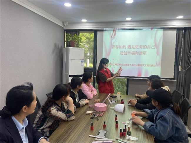 5月15日上午,平原社區(qū)開展“青春如約,遇見更美的自己”助創(chuàng)幸福和諧星活動。課程中,美妝老師先介紹了一下美妝的意義,然后細致講解了一下美妝的理論,參與的美妝愛好者根據(jù)自己的愛好,結(jié)合老師的講解,對美妝有了更進一步的認識。