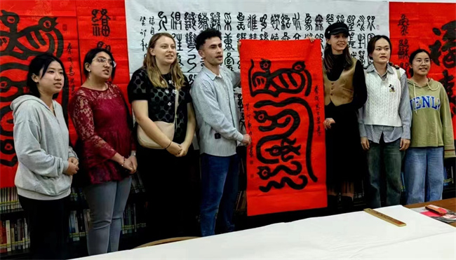 通過(guò)鳥(niǎo)蟲(chóng)篆文字的現(xiàn)場(chǎng)交流學(xué)習(xí),使外國(guó)留學(xué)生對(duì)中國(guó)文字的博大精神加深了細(xì)致的了解,對(duì)中國(guó)先人用智慧發(fā)展文字的成果,更加敬仰。
