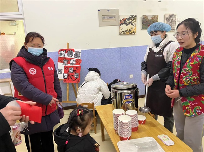 當(dāng)日下午,在一片歡呼聲中,“廟會”活動拉開帷幕。“廟會”里設(shè)有傳統(tǒng)小吃街、民俗游樂街、義賣活動等。在現(xiàn)場,參與活動的小朋友和大人們可以親手寫對聯(lián)、購買自己喜歡的年貨、品嘗具有年味的湯圓、動手剪出心儀的年畫,歡歡喜喜迎接新年的到來;顒蝇F(xiàn)場,還設(shè)置了獨(dú)具特色的游戲活動。套圈、運(yùn)球、傳統(tǒng)玩具競賽、猜燈謎.……“廟會”把民俗文化融入游戲當(dāng)中,讓大家在游戲中感受到傳統(tǒng)文化的魅力。同時,社區(qū)工作人員還對垃圾分類和反詐騙進(jìn)行宣傳,通過設(shè)置分類垃圾桶等形式向居民普及垃圾分類知識,提醒居民們保護(hù)環(huán)境,垃圾入框。