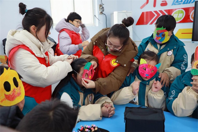 該校文化藝術部幼教專業(yè)師生精心準備了各式各樣的白色動物面具,讓志愿者帶領孩子在面具上涂上自己喜歡的的五顏六色,正如他們現(xiàn)在的年紀風貌,陽光燦爛。
