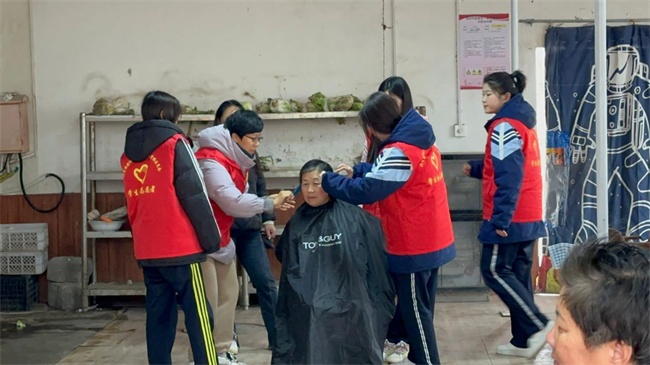 張冬梅老師還以自身專業(yè)為引領,帶領商貿旅游部學生為老人們義務理發(fā),為老人們洗頭等,人人爭先恐后,不怕臟累。