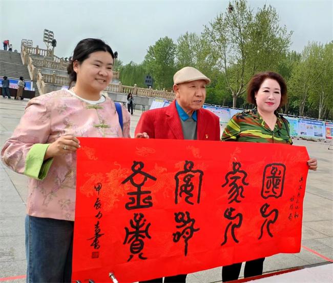 河南省華夏文明促進會豫北書畫院非物質(zhì)文化遺產(chǎn)鳥蟲篆傳人趙力志、白東升和工作人員王莉芬參加了活動。