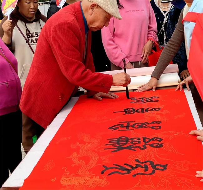 一幅幅用鳥蟲篆、隸書、行書書寫的“國家安全,人人有責”,“固夲強基保安全,應急應戰(zhàn)鑄鐵軍”,“維護正道正義,倡導新風正氣”,“守正創(chuàng)新,以史潤城”等作品。深受群眾歡迎。