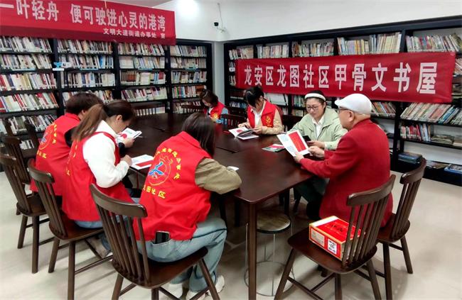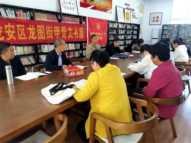 中新河南網(wǎng)(趙力志 張文平)四月二十三日上午,安陽市龍安區(qū)文廣體旅游局、文化館,河南省華夏文明促進會豫北書畫院,龍安區(qū)龍圖街甲骨文書屋,龍安區(qū)嘉州華庭1社區(qū)甲骨文書屋分別組織讀者座談會,暢談世界讀書日的重要性。