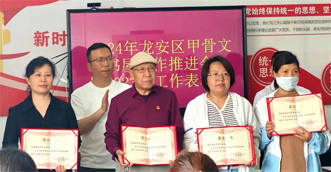龍安區(qū)各鄉(xiāng)鎮(zhèn)、辦事處單位非物質(zhì)文化遺產(chǎn)傳承人,甲骨文書屋管理人員等三十余人參加了會議。