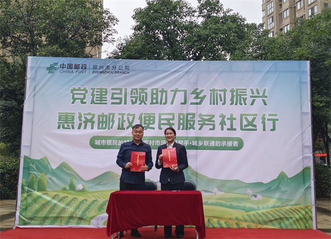 中新河南網(wǎng)(田波濤)2024年10月18日,鄭州市惠濟區(qū)新城街道毛莊村聯(lián)合惠濟郵政在毛莊二號院小廣場開展“黨建引領(lǐng)助力鄉(xiāng)村振興惠濟郵政便民服務(wù)社區(qū)行”活動,毛莊村黨委書記毛廣俊與惠濟區(qū)郵政分公司黨支部書記何紀(jì)粉簽訂《黨建共建協(xié)議書》,并與何紀(jì)粉書記、惠濟郵政儲蓄銀行清華園路支行行長邢嬙及其員工參加該活動,現(xiàn)場開展各項金融惠農(nóng)、服務(wù)群眾活動,共同譜寫鄉(xiāng)村振興新篇章。