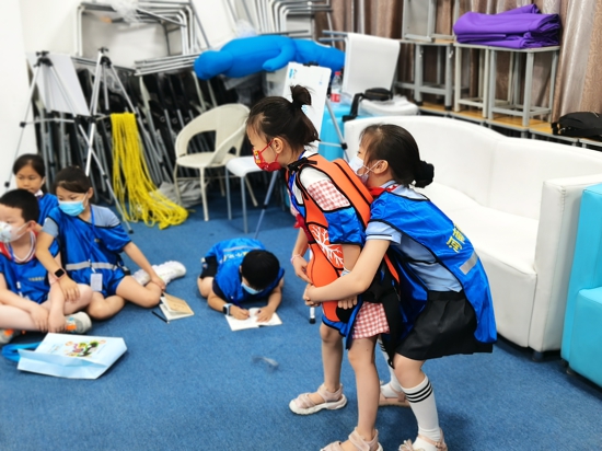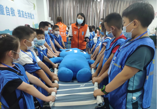 本次活動(dòng)中,志愿者采用體驗(yàn)式學(xué)習(xí)的方法,在教會(huì)小記者們千斤頂抬升、AED的使用、家具防傾倒、海姆立克急救法、毛毯擔(dān)架計(jì)時(shí)賽、結(jié)繩大比拼等6項(xiàng)技能后,由他們親身體驗(yàn)各項(xiàng)安全救護(hù)知識(shí),在體驗(yàn)中快速掌握這些救護(hù)能力。