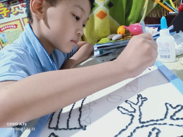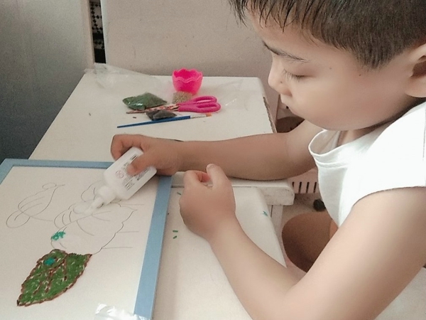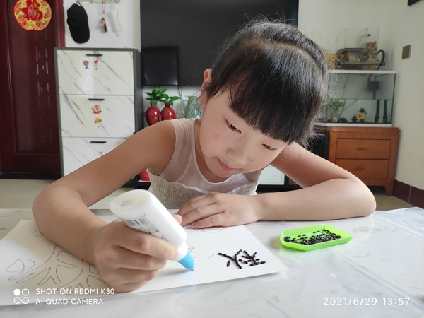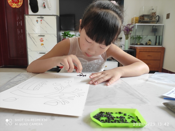 立秋是“四時(shí)八節(jié)”之一,也是季節(jié)轉(zhuǎn)換的重要時(shí)間節(jié)點(diǎn),同時(shí)也預(yù)示著收獲季節(jié)的到來(lái),隊(duì)員們利用五谷制作豆子粘貼畫,有的用綠豆和黑豆擺出樹木,有的用黃豆擺出秋天的樹葉,有的用紅豆和黃豆勾出秋的輪廓,充滿童趣的豆子粘貼畫不僅豐富了隊(duì)員們?cè)诩业纳钸表達(dá)了隊(duì)員們對(duì)秋天的喜愛之情。