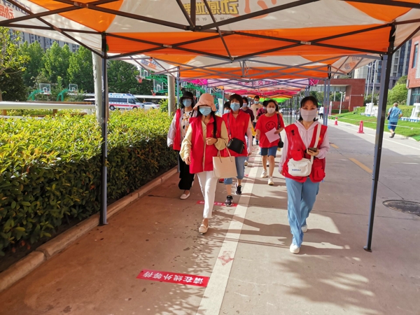8月20日上午,五龍口小學(xué)教師志愿者提前到達(dá)高新區(qū)八一中學(xué)新冠疫苗接種點(diǎn),按照疫苗接種各環(huán)節(jié)要求,有序引導(dǎo)家長和孩子們排隊(duì)掃碼、領(lǐng)取告知書;接種等待區(qū)的志愿者耐心引導(dǎo),及時解決家長的疑惑;疫苗接種后及時做好學(xué)生信息統(tǒng)計(jì),安撫學(xué)生緊張情緒......