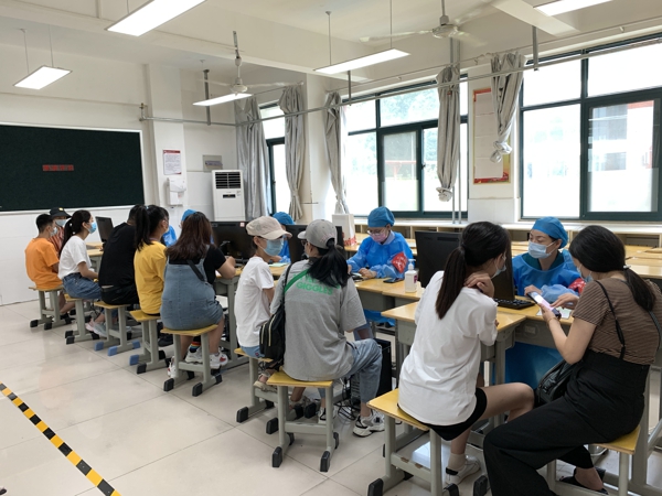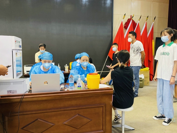 教師提前來到接種疫苗場地為學(xué)生提供幫助