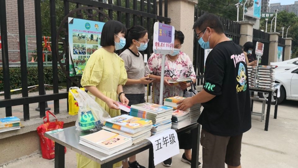 8月26日,二至六年級各班班主任結合小區(qū)分布和就近原則,通知各班3--5位家長代表,準時來到學校領書地點。一大早,教務處和安保處現(xiàn)場指導教材發(fā)放與防疫工作,并維持現(xiàn)場秩序。家長代表全程佩戴醫(yī)用防護口罩,聽從各班班主任及安保人員的指揮,測溫消毒、有序領取教材,力爭最大限度避免人員接觸,做到即拿即走,不在學校逗留。提前發(fā)放教材,解決學生居家線上學習的需求,確保線上教學工作的順利、有效地開展。