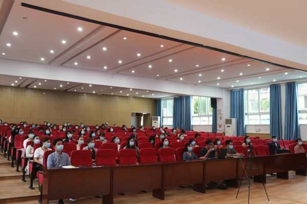 教研組長(zhǎng)和全體班主任在報(bào)告廳一樓參加會(huì)議