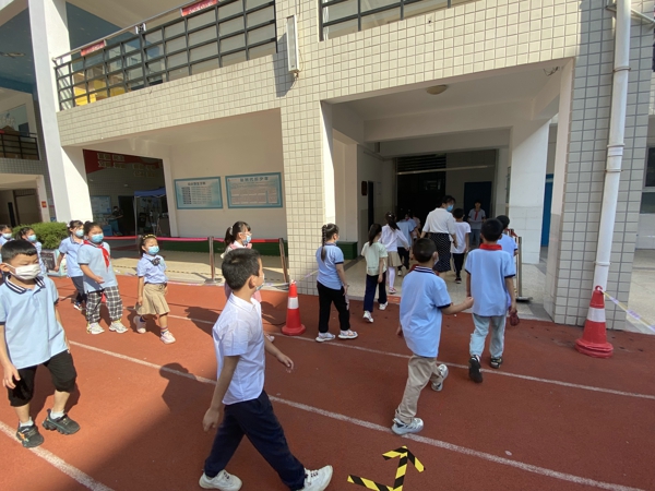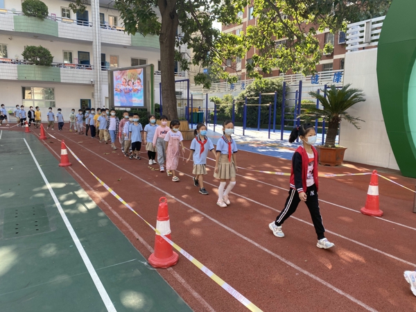 學(xué)生錯(cuò)峰進(jìn)行校園閉環(huán)路線演練