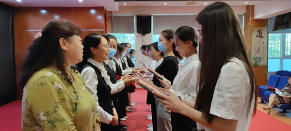 接著,導(dǎo)師代表崔璐君與年輕教師共勉,她希望青年教師們能虛心學(xué)習(xí),不斷向前;能立足課堂,承前研磨;能把握機(jī)遇,突破自我;能互相學(xué)習(xí),教學(xué)相長(zhǎng)。徒弟代表范甜甜老師表示在師傅的引領(lǐng)下,會(huì)積極學(xué)習(xí),以夢(mèng)為馬;奉獻(xiàn)青春,努力做一名優(yōu)秀的教師。