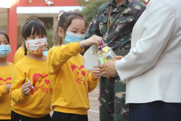 在入學(xué)儀式現(xiàn)場(chǎng),該校校長(zhǎng)王瑩首先代表學(xué)校對(duì)新同學(xué)表達(dá)了熱烈的歡迎,同時(shí)勉勵(lì)新同學(xué)將來(lái)要為學(xué)校明天的更加美好而努力奮斗。緊接著,一年級(jí)的新同學(xué)在主持人的帶領(lǐng)下舉行了隆重的拜師儀式,孩子們也把寫(xiě)有自己夢(mèng)想的卡紙珍藏在了班級(jí)的夢(mèng)想瓶中,種下了美麗的夢(mèng)想種子。此外,學(xué)校還邀請(qǐng)了消防戰(zhàn)士、交通警察、醫(yī)務(wù)工作者等向孩子們深情講述了他們?cè)诜姥础⒖挂哌^(guò)程中的一幕幕感人故事,讓孩子們感受到了榜樣的力量,在幼小的內(nèi)心種下了一顆“美麗”的種子。